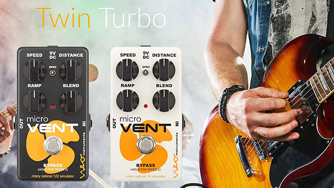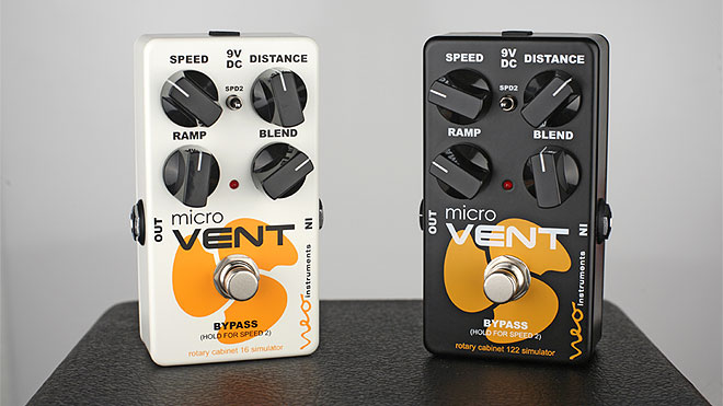 ロータリースピーカーのサウンドをストンプボックスサイズで実現するペダルが独Neo Instrumentsより登場。「micro VENT」がキャラクターの異なる2つのラインナップで5月22日に発売される。