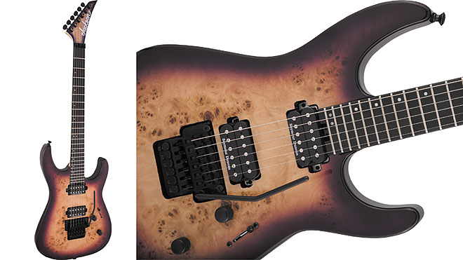 ジャクソンのProシリーズから、小ぶりなシェイプで演奏性の高い「Pro Series Dinky DK2P Purple Sunset」がリリース。エキゾチックなバール(根瘤)が目を引くポプラをトップ材に使用したディンキーだ。