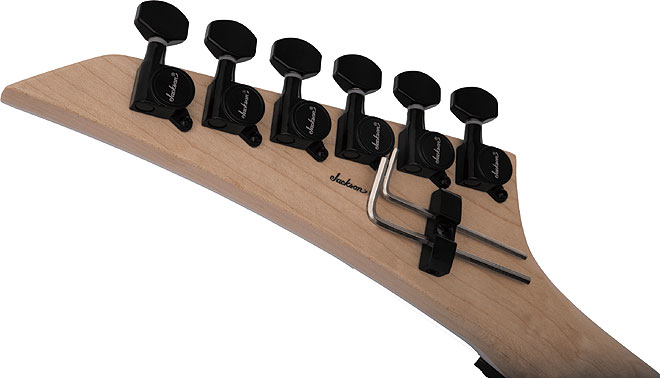 ブリッジはフロイド・ローズのダブル・ロッキング・トレモロを搭載し、激しいアーミング・プレイにも安定したチューニングを実現。ピックアップはセイモア・ダンカンのJB TB-4(ブリッジ)と’59 SH-1N(ネック)をダイレクト・マウント。また、ネック・エンド部分にはトラスロッド調整用のホイールを設けることで優れたメンテナンス性を実現している。