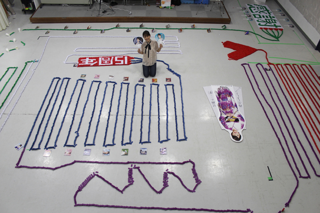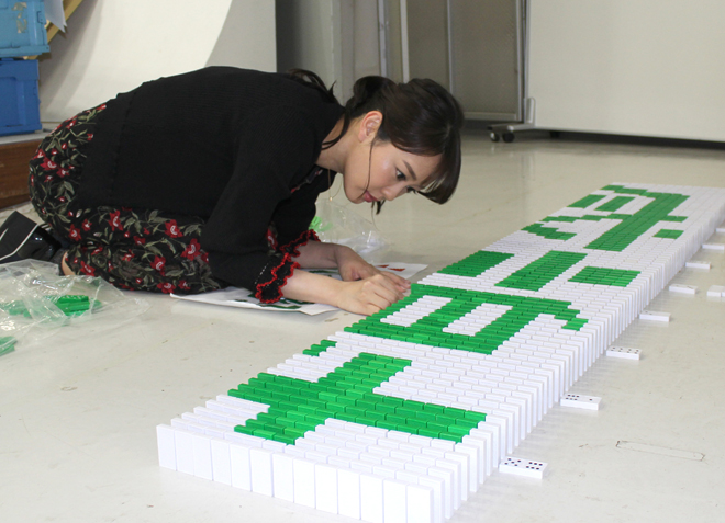丘みどり、15,000ピースのドミノ倒しに挑戦