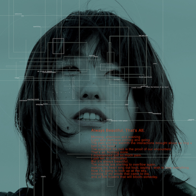 7月1日リリースのBパート「花が咲いたなら」から歌の世界もスタート。陰鬱かつ花々しい愛の言葉が広がったと思えば、そして8月5日リリースのCパート「everywhere」からは一転して、陽気でポップな世界が続いていく。多くの文学やアートに親しんだ彼女ならではの感性で紡がれた詩の世界と、艶やかな美声で奏でられる美しいメロディーだ。