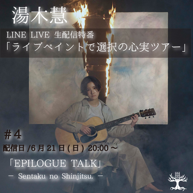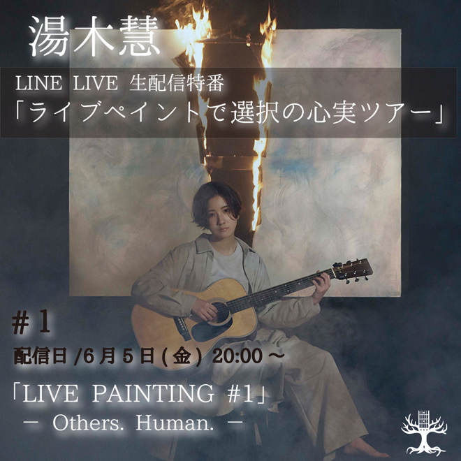 新型コロナウイルスの影響により、6月5日から開催予定だった東名阪福ワンマンツアー<選択の心実>の全公演の中止と、それに伴い同日にリリース予定だった新作EP『スモーク』の発売延期を発表していた湯木慧が、ツアーの開催予定だった4日間に特番「ライブペイントで選択の心実ツアー」をLINE LIVEにて生配信する。