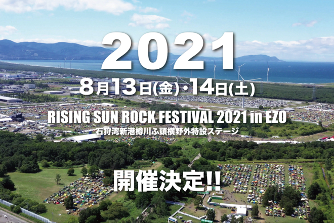 <RISING SUN ROCK FESTIVAL 2021 in EZO>が、2021年8月13日(金)、14日(土)の2日間、北海道・石狩湾新港樽川ふ頭横野外特設ステージにて開催されることが決定した。