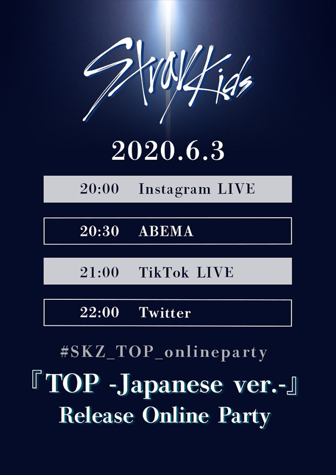 Stray Kidsが6月3日(水)、JAPAN 1st Single「TOP -Japanese ver.-」のリリースを記念して1日限定のオンライン企画“Stray Kids『TOP -Japanese ver.-』Release Online Party”を実施することが発表された。