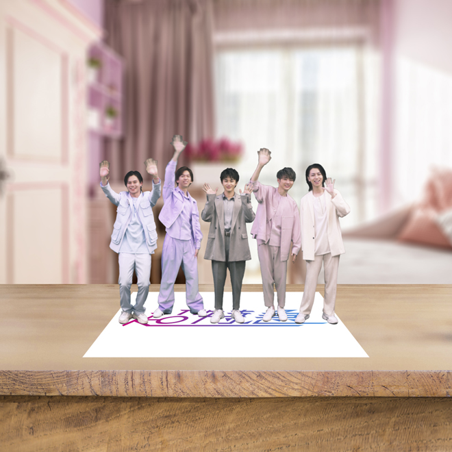 今回リリースされるのは、ソロ・全員が各1パターンの計6パターンだ。手のひらサイズになってくつろぐメンバーの愛らしさは、サンプル動画だけでも伝わるはず。また5人全員が挨拶してくれる無料お試しコンテンツも用意されているので、まずはアプリをダウンロードしてみてはいかがだろうか。