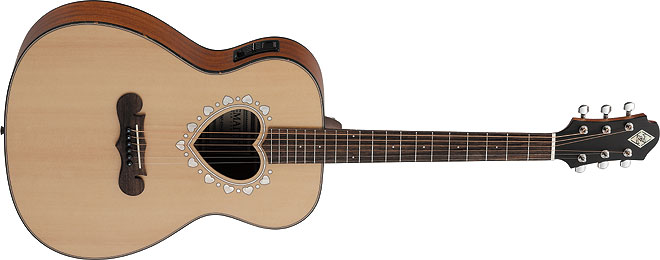 キュートなハート型のサウンドホールでおなじみのゼマイティス・アコースティックに、アンダーサドル・ピックアップ搭載のエレクトリック・アコースティック・モデルが登場。「CAF-80H」が3カラーのラインナップでリリースされた。