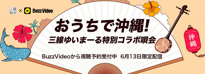沖縄県三線製作事業協同組合が主催するオンラインイベント<おうちで沖縄!三線ゆいまーる特別コラボ唄会>が、6月13日19:00よりショートビデオアプリ・BuzzVideoにて配信される。