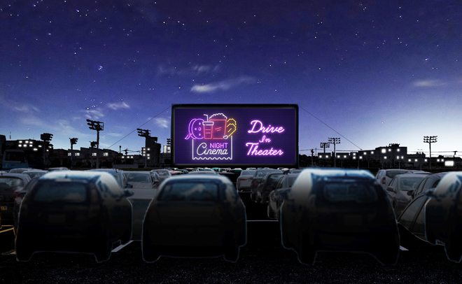 「ドライブイン・シアター」は、来場者の車の中でカーステレオのFM受信機を使って音声を楽しむ。車内で映画鑑賞が出来るので、来場者同士の接触を完全に排除し、安全を保ちながら外出及び映画鑑賞を楽しむことが可能だ。
