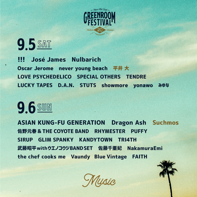 <GREENROOM FESTIVAL’20>、日割り発表。平井 大、Suchmosの出演も決定