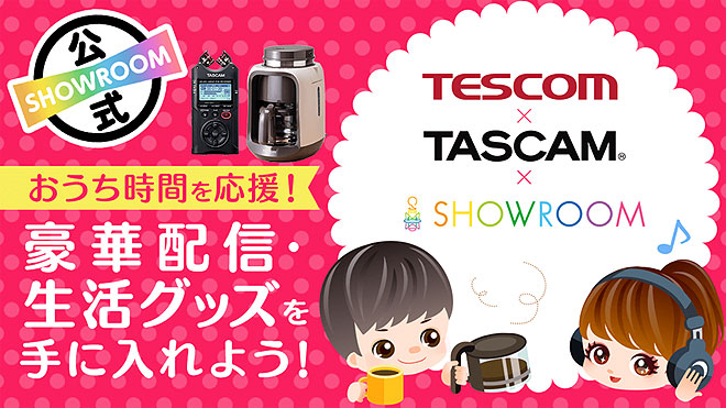 <TESCOM×TASCAM×SHOWROOM!おうち時間を応援!豪華配信・生活グッズを揃えよう!>