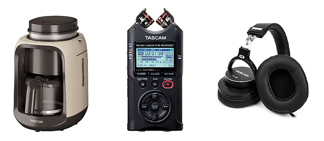 ▲ランキング1位賞品の全自動コーヒーメーカー「TESCOM TCM501」、デジタルレコーダー/USBオーディオインターフェース「TASCAM DR-40X」、モニターヘッドホン「TASCAM TH-06」。このほか2位以下にも豪華な賞品が用意される。