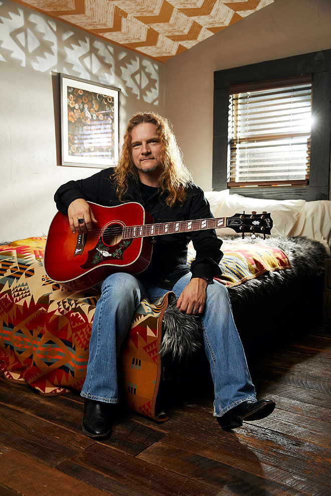 「ギブソン・ギターとの関わりは、私が子供のころから始まっていました。当時の私はギターヒーローだったピーター・フランプトンやジミー・ペイジにあこがれて、いつもギブソンのレスポールを弾くことを夢見てきました。さらに、もう一人のギターヒーローだったフランク・マリノの影響で、すぐに私はSGのとりこになりました。芝刈りなどのアルバイトをしてお金をため、ようやく16歳の時に初めてのSGを質屋で買ったんです。そして80年初頭にはそのSGでクラブで演奏していました。80年代中盤になると、トレンドが少し変わって尖ったギターとかが流行ったけれど、私はギブソンSGやレスポールのクラシックなスタイルとトーンが好きだったので、エレキはいつもこれらのギターを使用していました。アコースティックに関しては、私はしばらく幾つかのブランドのアコギを弾いていて、ギブソンのDoveに出会って初めてギブソンがこれほど良質のアコースティックギターを作っていることを知りました。