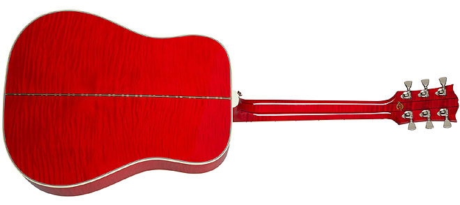 「Gibson Frank Hannon Love Dove」は、特別な熱処理によりエイジングの施されたサーマリー・エイジド・シトカ・スプルース・トップとメイプル・サイド・バック材のコンビネーションによる極上のレスポンスと鳴りを実現。さらに、左右両サイドでスキャロップ処理が施されマザー・オブ・パールによるインレイで装飾された70年代製ダヴのブリッジベースの採用、そして、手作業による彫刻作業やペイント作業が施された魅力溢れるダヴ・ピックガードの採用など、アップグレードの数々が盛り込まれている。ヴィンテージ・チェリー・サンバースト・フィニッシュで仕上げられたギターは、サウンドホール内のラベルにフランク・ハノンの直筆サインが記され、トラスロッド・カバーにはフランク自身が書いたLoveと言う文字が刻まれている。