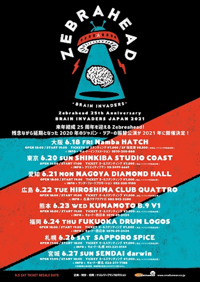 来年2021年はゼブラヘッド結成25周年目となる記念の年。延期となったジャパンツアーは、アニバーサリーツアーとして復活することに。ツアータイトルは、<Zebrahead 25th Anniversary BRAIN INVADERS JAPAN 2021>だ。
