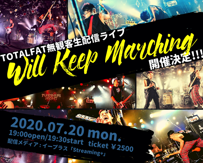 TOTALFATが、7月20日(月)に無観客生配信ライブ<Will Keep Marching>を開催することを発表した。