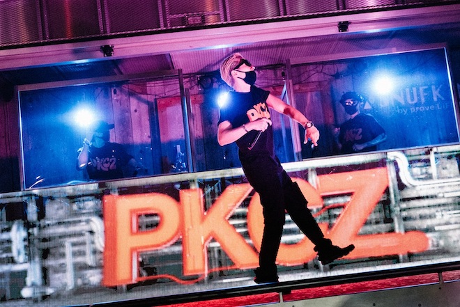 「Summer Madness PKCZ(R) remix」でVERBALが登場すると、ラップとコールアンドレスポンスでさらに会場を煽り、 PKCZ(R)の代表曲「PLAY THAT」も披露された。来場者もハザードランプやハイビーム、スマホのライトなどでオープニングを盛り上げた。