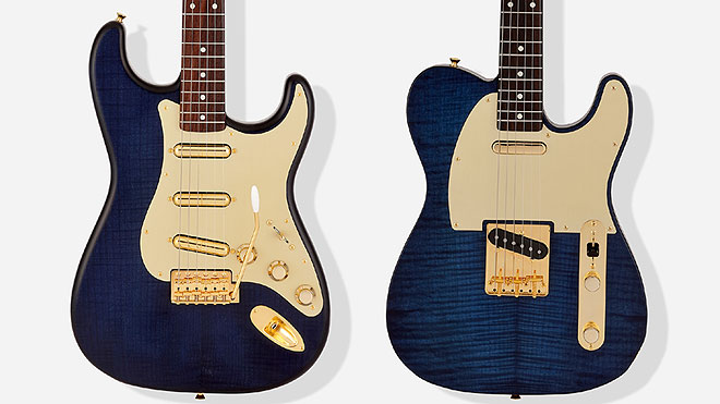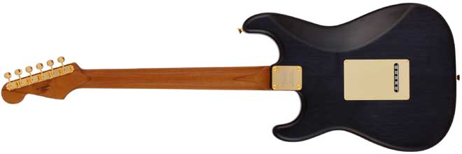 両モデルとも、自然な藍染で仕上げられたボディ(アルダー+キルトメイプルトップ)に高級感溢れるゴールドパーツのコントラストがギターとしての美しさを引き立て、ネックに採用したローストメイプル材が、時を重ねるにつれて全体的にさらなる深みを増していく製品に仕上がっている。