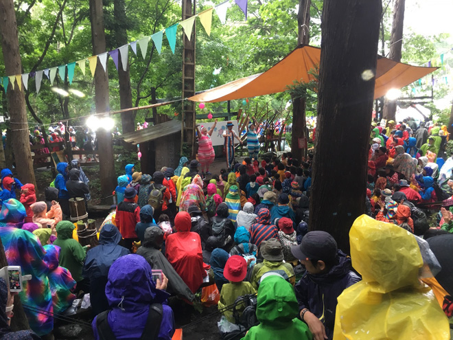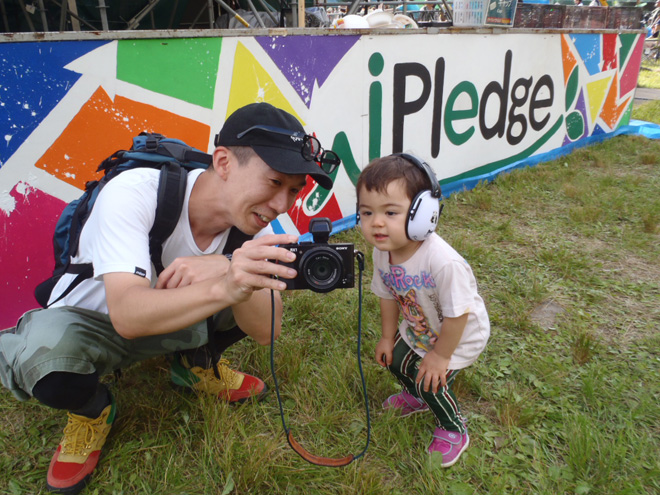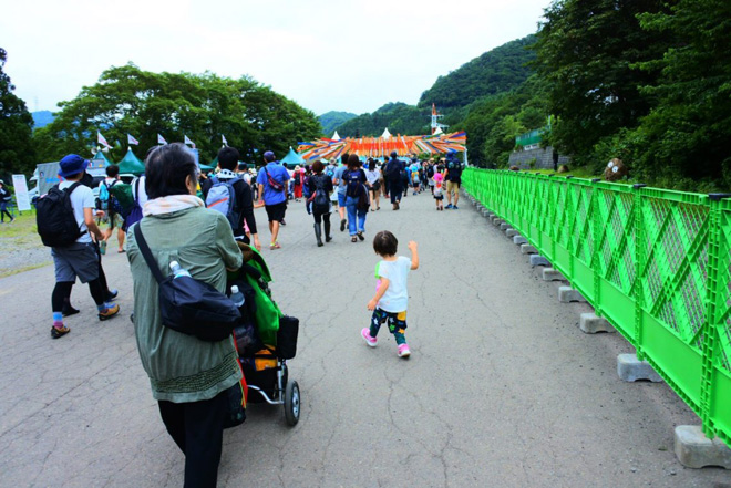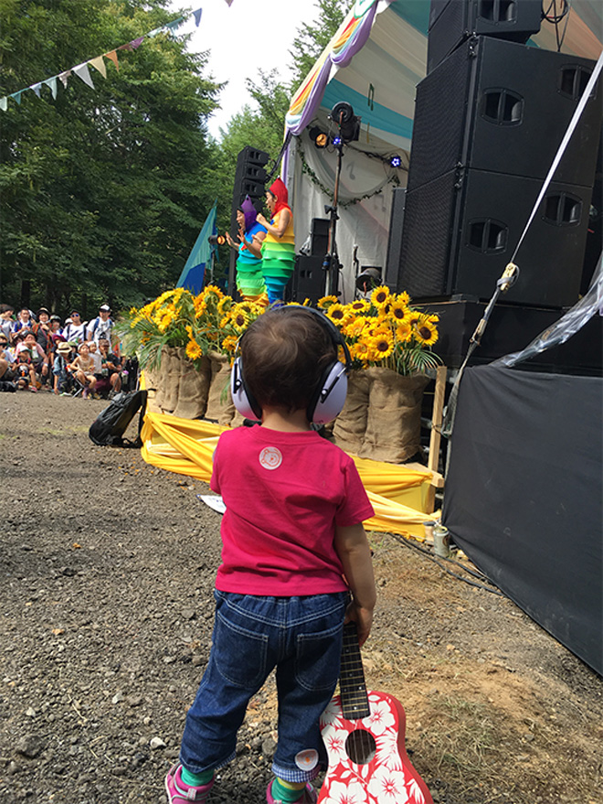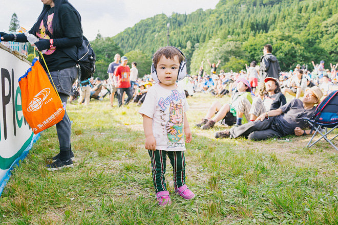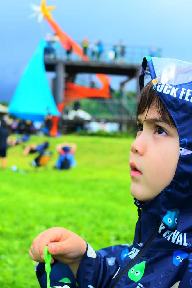 こどもを<フジロック>に連れていくことに対して批判的に見ている人もいるようだけれど、他の数千にも上るファミリー同様、私たち親子も<フジロック>という年に一度しかないスペシャルな3、4日間を、音楽と自然が溢れる非日常的な空間に身を置き、他では体験できない家族の思い出を積み重ねて大きく育んできた。きっかけは私が学生だった頃から<フジロック>を唯一無二の空間として特別視していること、そして<フジロック>が20周年を迎えた2016年に始まった子どもを連れてフジロックに参加する人たちを応援する情報発信プロジェクト“こどもフジロック”のメンバーとして活動し始めたことにある。
