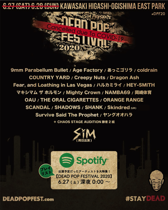 SiM主催<DEAD POP FESTiVAL 2020>、出演予定だった全アーティストを発表