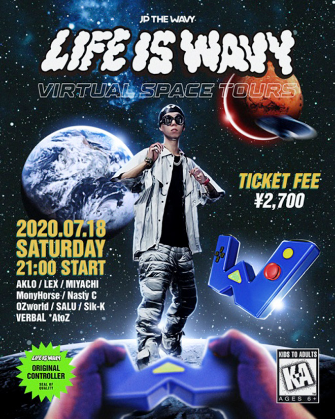 JP THE WAVYが、7月18日21:00よりAR(拡張現実)やCGなどの映像技術と生のパフォーマンスを組み合わせたオンラインライブ<LIFE IS WAVY VIRTUAL SPACE TOURS>を開催する。