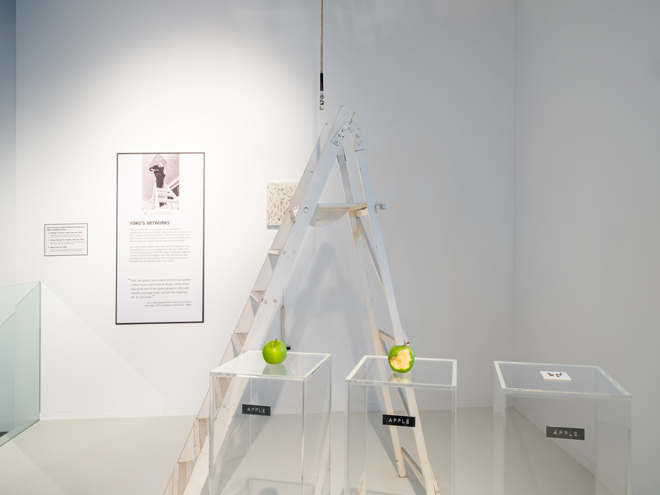 ジョンとヨーコが生み出したアート、音楽や映像作品とともに、ヨーコ自身のプライベート・コレクションからの貴重な品々を含めた100点以上を展示。時系列順に展開され、前衛芸術界を牽引する一人の芸術家であるヨーコと、世界的ロック・スターであるジョン、という二人の天才の誕生から、ロンドン・インディカ・ギャラリーでの運命的出会いを経て、その後互いに影響を与えあったアーティスト活動全般を辿る。