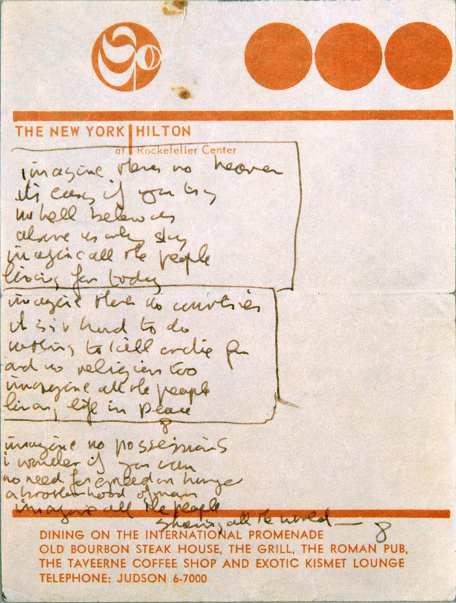 ▲「イマジン」手書きの歌詞/(c)Yoko Ono