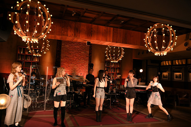 冒頭の挨拶でMAYUは「直接会えないので、今日は私達はみなさんの顔は見えないけど、みなさんの笑顔を想像してライブを行います」と意気込んだ。また、かれんは、「将来への不安や日々悩んでいることがあると思いますが、いま画面の前で見てくれている方が、一歩を踏み出せるように」とメッセージを添え、この日が初のフル尺パフォーマンスであった新曲「足跡」を披露した。