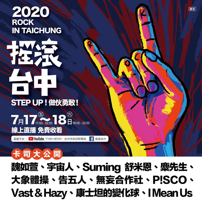 台湾・台中市内で毎年開催されている野外ロック・フェスティバル<搖滾台中ROCK IN TAICHUNG>が、2020年の開催をオンラインライブ形式でおこなうことを発表した。