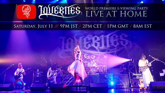 LOVEBITESが、7月22日(水)の最新ライヴBlu-ray/DVD/2CD『ファイヴ・オブ・ア・カインド ~ライヴ・イン・トーキョー2020』のリリースに先駆けて、7月11日(土)にバンドの公式YouTubeチャンネルにて同作品のオンライン先行上映会<LIVE AT HOME>を行う。