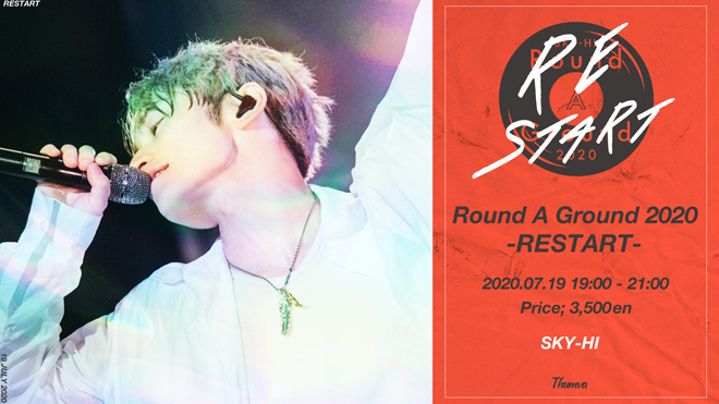 SKY-HIが7月19日19時よりオンラインライブ<SKY-HI Round A Ground 2020 -RESTART->を開催し、その模様をライブ配信プラットフォームサービス・Thumva(サムバ)にて生配信する。