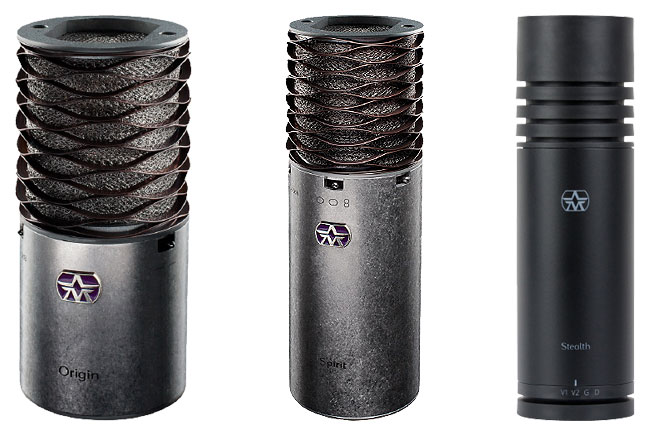 ▲インタビューに登場するOrigin、Spirit、Stealth。Originはトランスレスで中低域が太く、ナチュラルで芯のある音質。Spiritはトランス内蔵、きらびやかな高音域が特長。Stealthはマルチボイスパターン、高音質マイクプリを内蔵した今回唯一のダイナミックマイク。