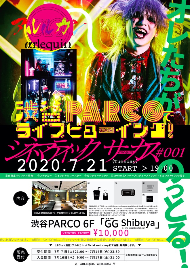 なお同日、渋谷PARCO 6F『価格.com GG Shibuya mobile esports cafe&bar』にて食事をしながら楽しめる生配信ライブビューイングの実施も決定した。迫力の音響設備と6面のテレビモニターの中から170インチの大画面LEDで配信ライブを体感できる限定50名のスペシャル企画となる。店内はアルルカン一色に染まり、メンバーがプロデュースする様々な特典も用意。ライブ配信終了後にはメンバーが直接会場をジャックしにやってくるという特典も。つまり、「オンライン」と「オフライン」の世界を繋ぐ挑戦となる。