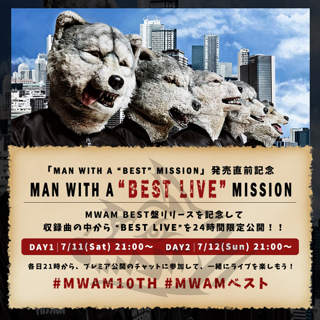 また、アルバム発売当日の7月15日(水)21時からトーク&ライブを届ける特別番組の無料配信や、7月11日(土)~12日(日)の二日間にわたり、厳選した過去のライブ映像をYouTubeにて24時間限定公開する「MAN WITH A “BEST” LIVE MISSION」など、自宅で楽しめる企画を実施する。