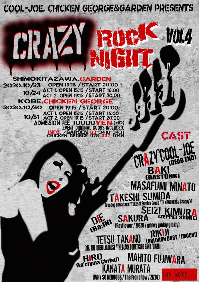 ■<COOL-JOE, CHICKEN GEORGE & GARDEN Presents “CRAZY” Rock Night Vol.4>