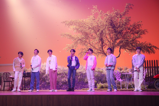 「ファンの皆さん、本当に会いたかったです」と挨拶しスタートしたこの日のイベントでは、『MAP OF THE SOUL : 7 ~ THE JOURNEY ~』の中から、日本、アメリカ、イギリス、イタリア、ブラジル、ロシアなど97の国と地域のiTunesトップソングチャートで1位を獲得した「Your eyes tell」と、ミュージックビデオのYouTube視聴数が7500万回以上を記録しているリード曲「Stay Gold」が生披露された。
