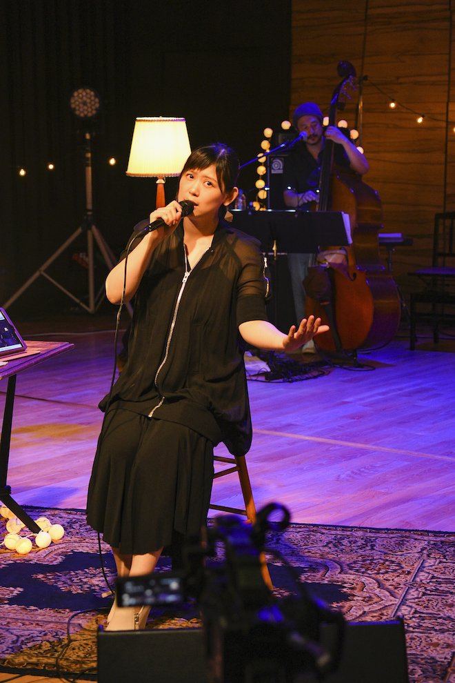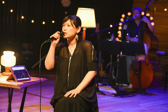 MCではスツールに腰掛け、マグカップに入った飲み物で喉を潤し、手元のタブレットで視聴者のリアルタイムチャットを見ながらトークを繰り広げる。7年ぶりにリリースするカバーアルバム『遊音倶楽部~2nd grade~』について触れた彼女は、「カバーにはオリジナルにはない楽しさと、なにより学びがある」と述べ、同作に収録されているback numberの「ヒロイン」、ポルノグラフィティの「アポロ」を歌唱。前者は歌詞に描かれた物語を噛みしめながら大事に一言一言を紡ぎ、後者ではリズムを巧みに操りジャズのような空気感を作り上げていく。ボーカルの在り方の振れ幅の妙を感じさせる一幕だった。