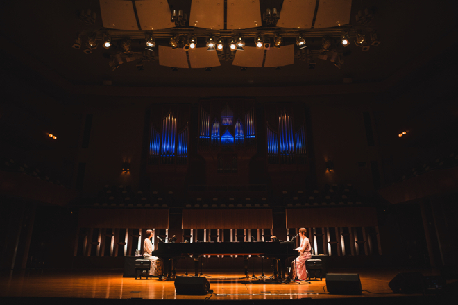会場は、クラシックの殿堂ザ・シンフォニーホール(大阪市北区)。日本初のクラシック音楽専用ホールとして1982年に建設された由緒あるホールだ。パイプオルガンの雄姿を背負った広いステージに、グランドピアノ2台が向かい合ってセッティングされた。