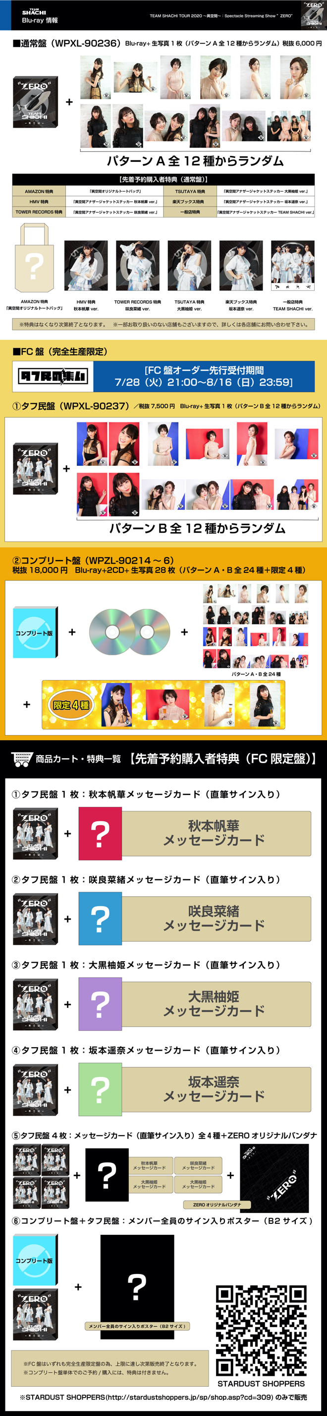 “タフ民盤”には無観客ライブの映像に加えて、TEAM SHACHIメンバーやバンドメンバー、コンサート制作スタッフらが瀬戸口俊介(SCRAP)の司会で舞台裏のエピソードを語る「Behind the ZERO」の収録が決定。通常盤とは別パターンの生写真も封入される。