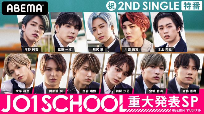 ABEMA SPECIALチャンネルにて、JO1による特別番組『JO1 祝!2ndシングル特番『JO1 SCHOOL』重大発表SP』が8月22日(土)夜9時から放送される。