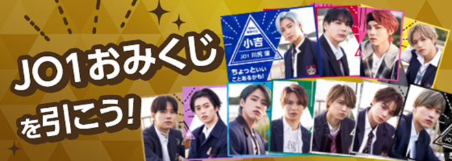 本企画は、「Yahoo!検索」(PC版、スマートフォンウェブ版「Yahoo! JAPAN」および「Yahoo! JAPAN」アプリ/iOS版、Android版)で“JO1 おみくじ”と検索すると、JO1メンバーの画像を使 用したおみくじ画像34種類が高速回転し、おみくじを引けるという内容だ。おみくじの結果は、メンバー全員が映る大吉、さらに、メンバーそれぞれの画像を使用した中吉・小吉・凶を予定している。
