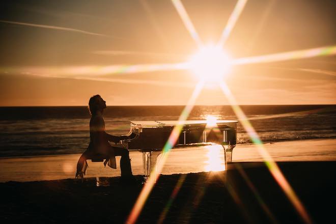 それからロサンゼルスの広大な海をバックに浜辺でピアノを演奏するYOSHIKIの姿が映し出されると、彼の奏でるピアノの音色にSixTONES、LiSA、BABYMETAL、milet、そしてロジャー・テイラー、サラ・ブライトマンの歌声が次々に重なっていった。