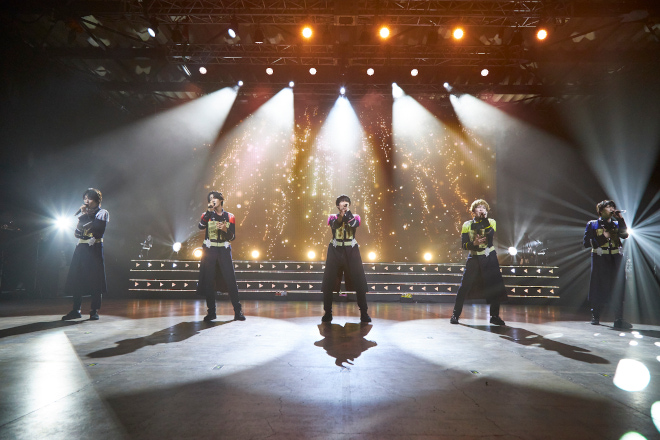 最後のMCでは早くもニューアルバムをリリースすることを発表。吉田は「前作はガッチリカッコよく作り込んだんですが、今回は遊び心がある楽しいアルバムになってます。メンバーが監督した映像とか、DIYの玩具箱のような盛りだくさんの内容になってます」と語り、日々を共に過ごす仲間の大切さを綴った「My Treasure」で温かい雰囲気を作り出した。そして、佐野が「画面越しのあなたが笑顔で大きな声で応援してくれる姿が届きました。ありがとうございます」と感謝の気持ちを伝え、白い林檎をキーアイテムとした、時空をこえた巡り合いの物語は大団円を迎え、5人は新たな旅へと向かった。