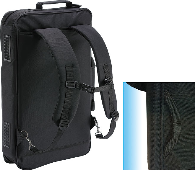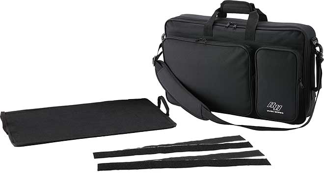 コンパクト・エフェクターがたっぷり収納でき、大きなマルチエフェクターも収納可能。ボードにエフェクターを固定するためのファスナー・テープ(2ペア)も付属。表側には2サイズのポケットがあり、スコアや必要なアクセサリー類も収納することが可能だ。バックパック/肩掛け/手提げ(縦&横)の3ウェイで運搬時に重宝する。