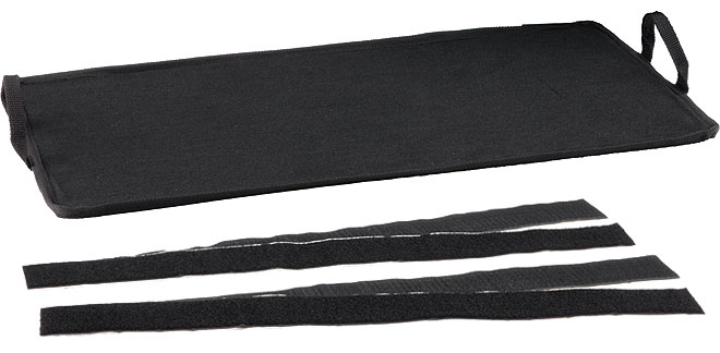 ▲ボードの材質は合板、ポリエステル。サイズはH31×W55.5×D0.6cm、重量0.5kg。付属のファスナー・テープでエフェクターを固定する。