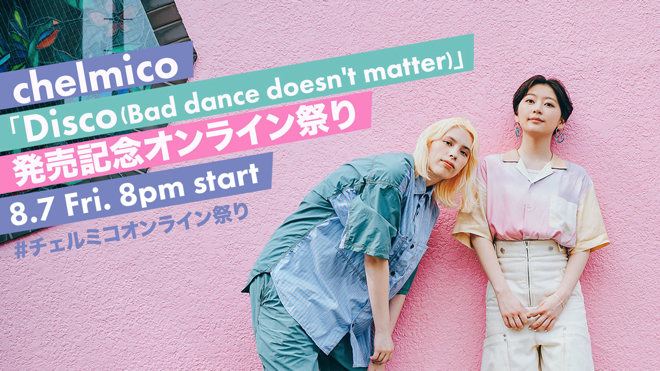 なお、本日20時からは「Disco (Bad dance doesn’t matter)」のリリースを記念した<chelmico 「Disco」 発売記念オンライン祭り>が生配信されることも決定している。