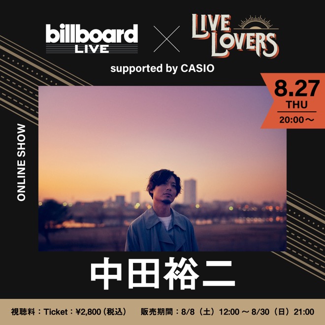 中田裕二が8月27日(木)、ビルボードライブ横浜より配信ライブ<中田裕二 ONLINE SHOW ~LIVE LOVERS~ from Billboard Live supported by CASIO>を実施することが明かとなった。