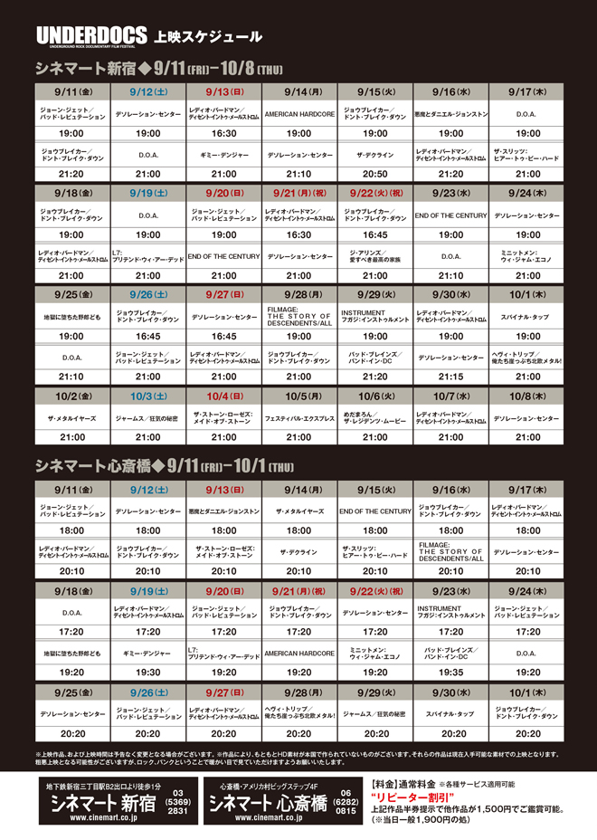 “アンダーグラウンドなロック・ドキュメンタリー映画”の特集上映<UNDERDOCS>、開催初日9月11日(金)に決定、さらに各作品の上映日程解禁