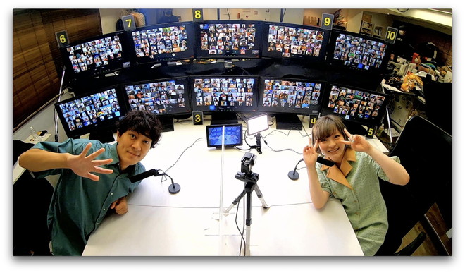 そんな中、ファンと一緒に楽しめるイベントをしたいという想いから、オンラインイベントを企画。当日にはおよそ500人のファンが集結し、参加者全員が会場のモニターに映し出されるなど、同じ空間でイベントを体感できる工夫がされていた。