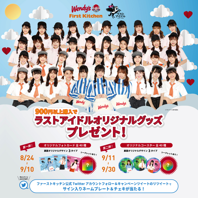 ラストアイドルとファーストキッチン&ウェンディーズ・ファーストキッチンのコラボキャンペーンが決定した。キャンペーン期間中に900円以上購入すると、撮り下ろしビジュアルを使用したオリジナルグッズを入手することができる。