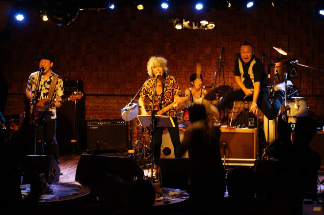 ▲MIYAKE SHINJI & THE SPOONFUL、左から高橋“Jr.”知治 三宅伸治 KOTEZ茜。提供:三宅伸治